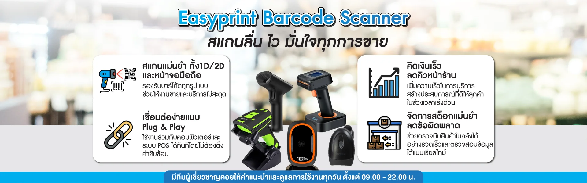 ใช้ที่เคาน์เตอร์ หรือเดินสแกนรอบร้าน/คลัง (มีสาย–ไร้สาย)